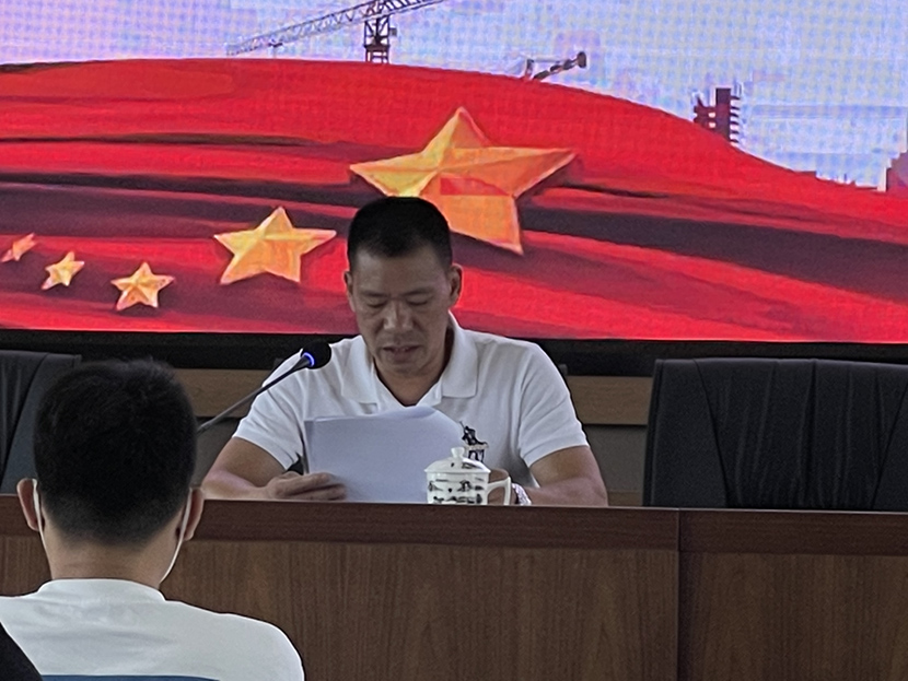 分管安全副總吳韶斌向大家宣貫《關(guān)于開展2022年市區(qū)建筑施工領(lǐng)域“安全生產(chǎn)月”活動(dòng)的通知》等文件精神,將公司級(jí)“安全生產(chǎn)月”活動(dòng)方案進(jìn)行交底,并對(duì)各項(xiàng)目“安全生產(chǎn)月”活動(dòng)開展作出指示及要求。
