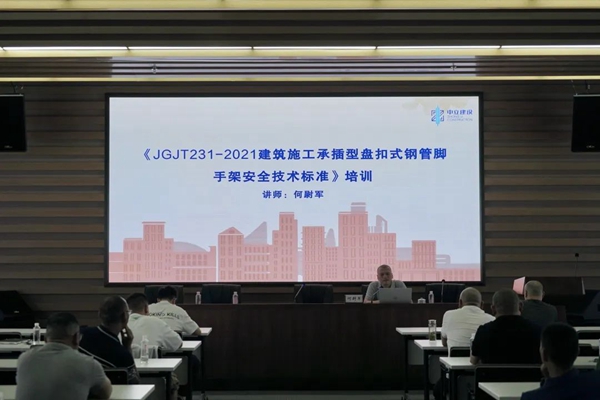麗水市建筑工程施工管理中心何尉軍同志就《JGJT231-2021建筑施工承插型盤扣式鋼管腳手架安全技術(shù)標(biāo)準(zhǔn)》進(jìn)行培訓(xùn)。