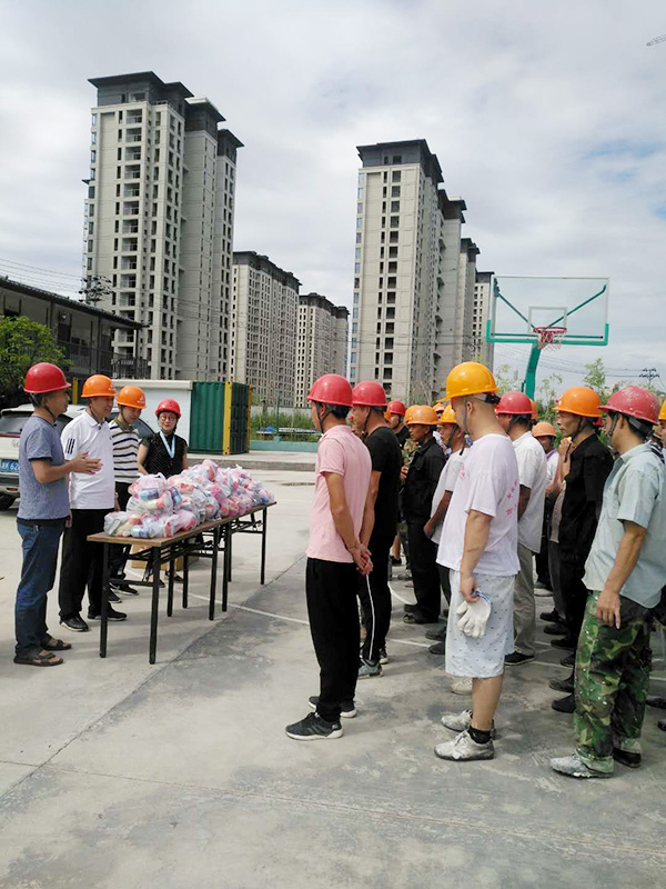 蔣金松副局長對項目人員和建筑工人們表示了親切的慰問和感謝,并要求項目管理人員堅持“以人為本”、“安全第一”的理念,努力改善工作環境,調整施工時間,避開中午高溫時間段施工,合理安排夏季施工作業計劃,提高防范意識,確保建設工程施工安全與職工身體健康兩不誤。